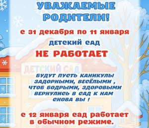 Образовательное учреждение работает круглый год по графику пятидневной рабочей недели с двумя выходными днями. Продолжительность работы образовательного учреждения – 12 часов..
